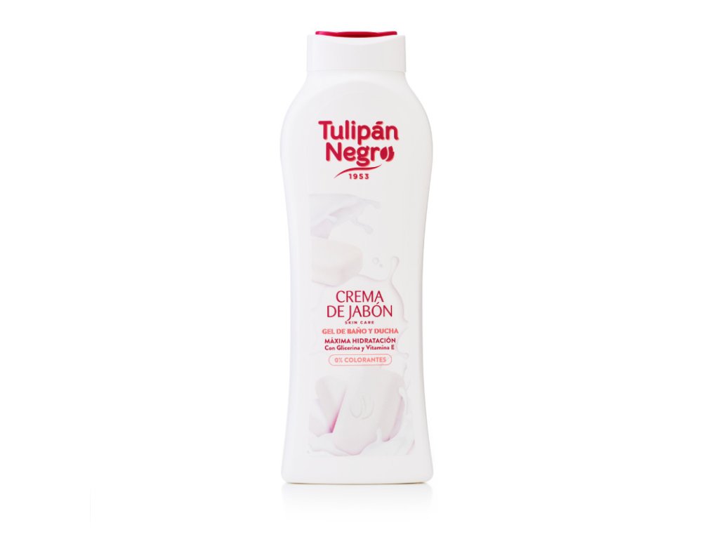 Tulipán Negro sprchový gél Crema de Jabón 650ml extra intenzívna svieža vôňa čistoty Hydratačný s vôňou krémového mydla S glycerínom a vitamínom E Starostlivosť o hygienu tela bez farbív Vegan Vyšší level zážitku zo sprchovania Veľké balenie až 650 ml Cena je za 1ks/650mlDodatočné parametre