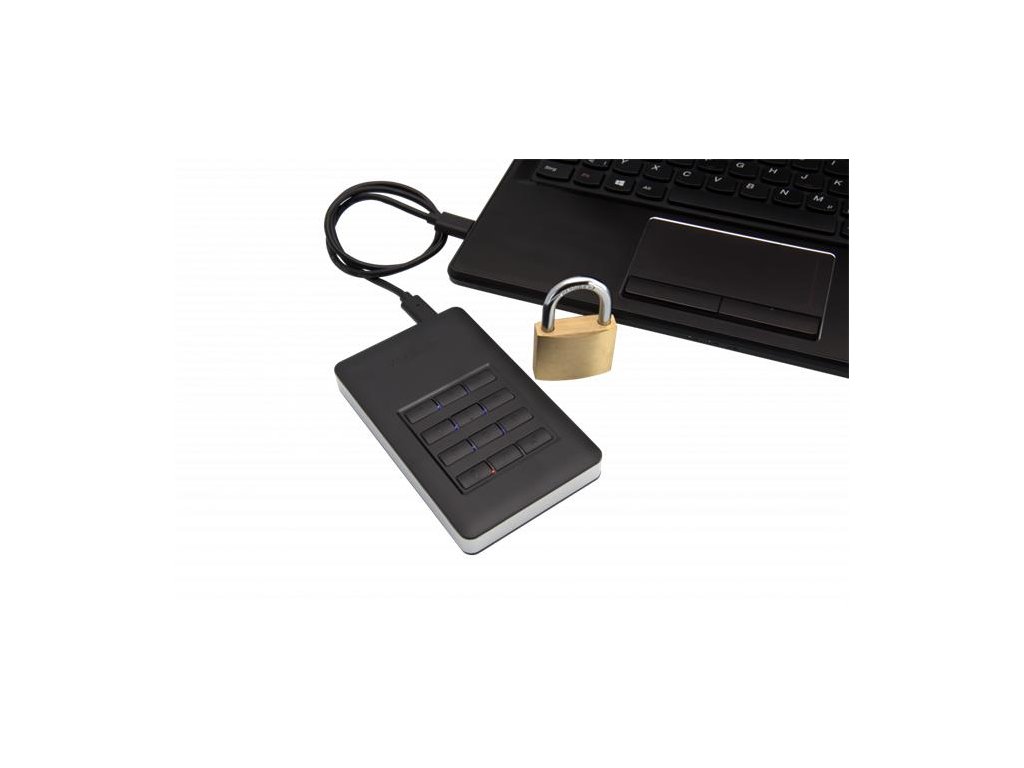 hardvérové 256-bitové šifrovanie AES zabudovaná klávesnica na ochranu heslom (až 12 číslic) po viacerých neúspešných pokusoch sa údaje na pevnom disku odstránia pri šifrovaní hardvéru váš počítač neukladá vaše heslo USB 3.1 /USB 2.0 Windows 10, 8, 7 Mac OS X 10.4 alebo novšie hmotnosť výrobku: cca. 190 gramov rozmery výrobku: 123,5 mm x 76 mm x 11 mm hliníkový a plastový kryt 2 roky obmedzená zárukaDodatočné parametre