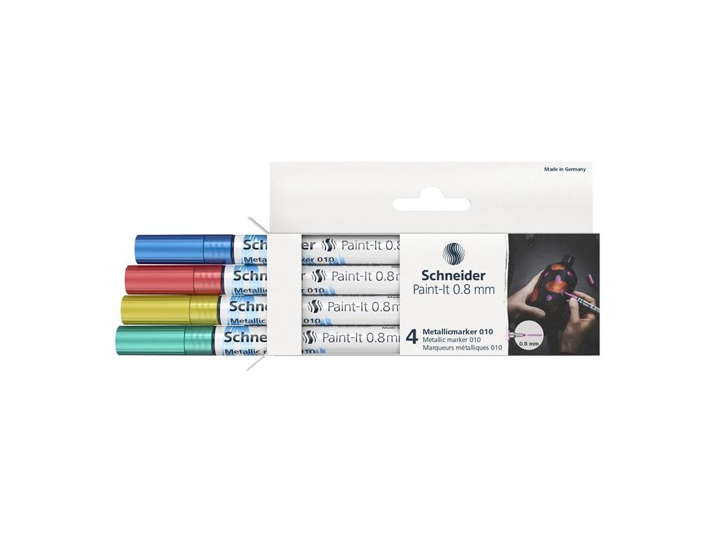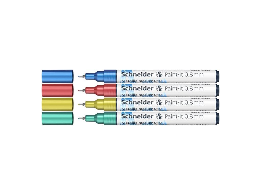 Akrylový popisovač, sada, 0,8 mm, SCHNEIDER "Paint-It 010", 4 rôzne farby