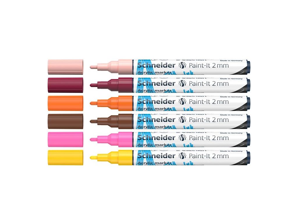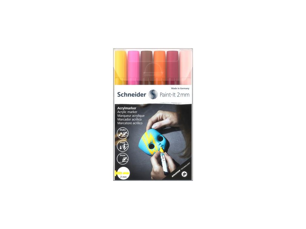 Akrylový popisovač, sada, 2 mm, SCHNEIDER "Paint-It 310", 6 rôznych farieb