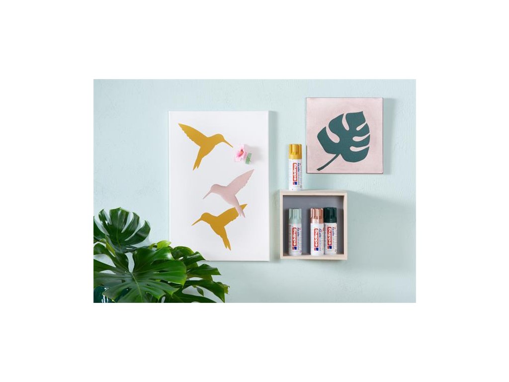 Pre všetky remeselné a remeselnícke práce, drevo, kameň, tapety, plátno, kov, sklo, keramiku a lakované plasty. -veľmi rýchle schnutie, akrylová farba prémiovej kvality, doma aj vonku -výnimočne silné krytie - povrch, ktorý sa má natrieť, musí byť čistý, suchý, bez hrdze a mastnoty -pokryte alebo nalepte nefarbené povrchy -leští a pripravuje nerovnosti povrchu - pred použitím fľašu pretrepte (3 minúty) - vykonajte testovacie striekanie: nastriekajte cca.v 2-minútových intervaloch v niekoľkých tenkých vrstvách - rozmetávacia vzdialenosť je cca. 25 cm -po 3 minútach je povrch suchý, cca.po 30 minútach je úplne suchý - doba schnutia závisí od hrúbky nanášanej vrstvy farby a od teploty okolia na plasty a expandovaný polystyrén, Edding polystyrén alebo je potrebné použiť základný náter z plastu -K dispozícii je špeciálna sada trysiek na maľovanie jemných línií alebo väčších povrchov Značka: EDDING Výrobca: EDDING INTERNATIONAL GMBH Adresa: Bookkoppel 7, 22926 Ahrensburg, Germany Web: www.edding.com Email: info@edding.comDodatočné parametre