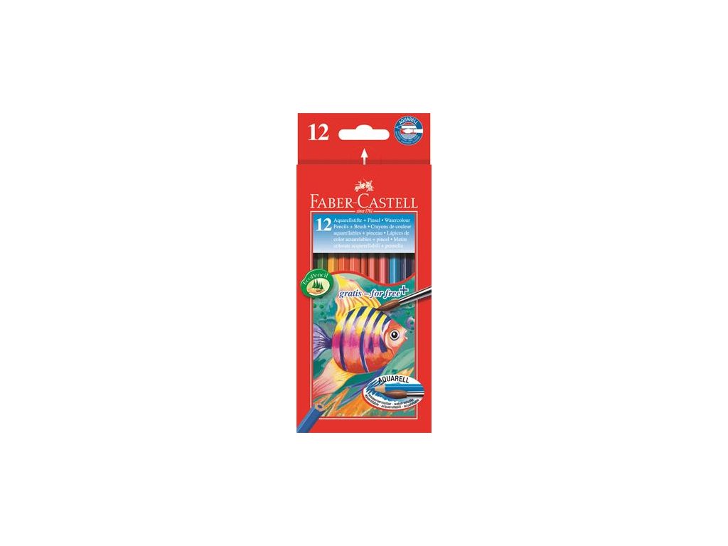 Akvarelové ceruzky, sada, šesťhranné, so štetcom, FABER-CASTELL, 12 rôznych farieb