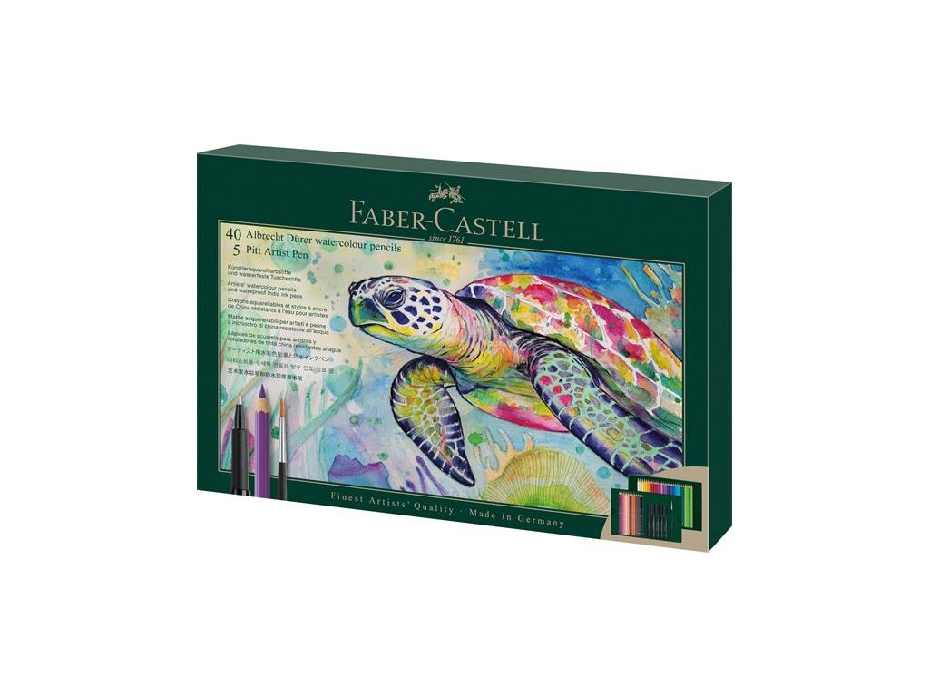 Akvarelové ceruzky, sada, so štetcom, FABER-CASTELL "Albrecht Dürer & Pitt Artist Pen", 46 ks
