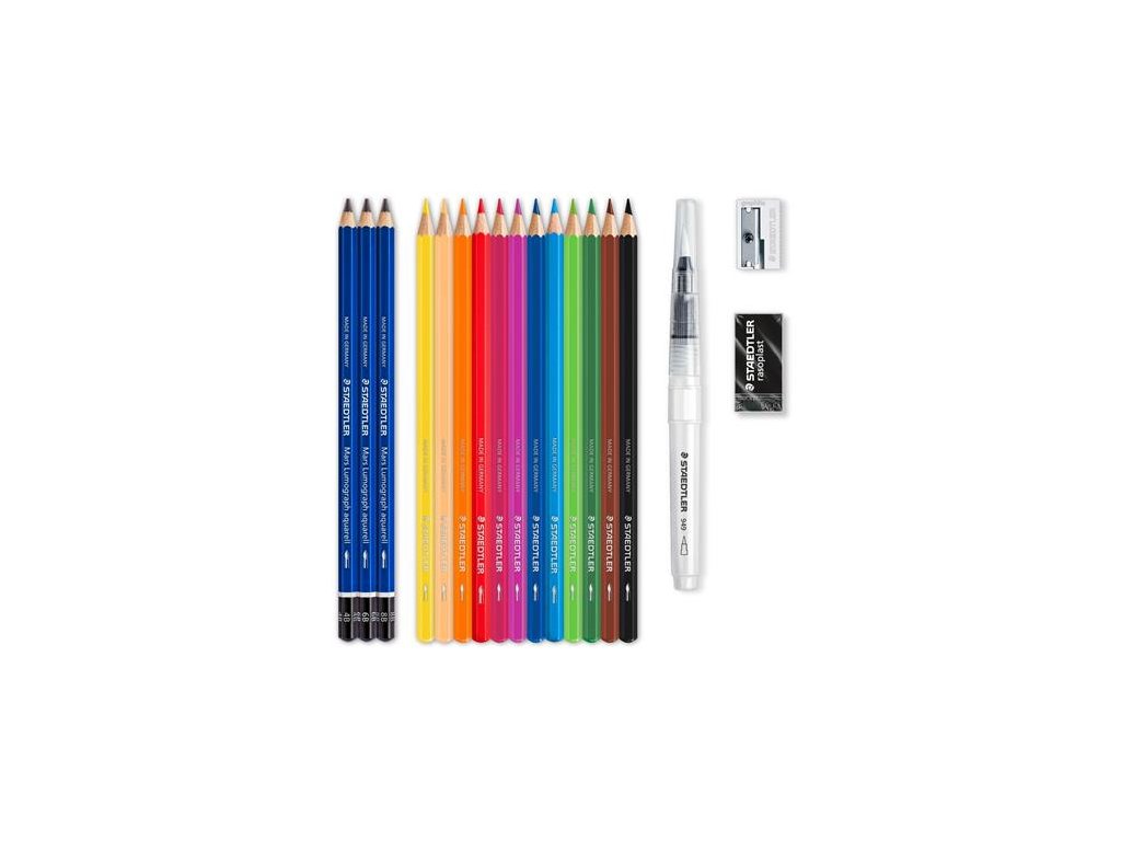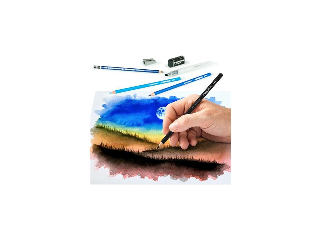 kvalitná, profesionálna akvarelová ceruzka v klasickom šesťhrannom tvare akvarelová tuha: môže sa použiť na sucho alebo s vodou ponúka širokú škálu kreatívnych použití možno použiť so štetcom a vodou tiha odolná voči lámaniu sada obsahuje: 12 rôznych farieb akvarelových ceruziek, 3 akvarelové grafitové ceruzky rôznej tvrdosti (4B, 6B, 8B), gumu, strúhadlo, vodou naplniteľný štetec s certifikátom PEFC a spĺňa požiadavky trvalo udržateľného obhospodarovania lesov Značka: STAEDTLER Výrobca: STAEDTLER SE Adresa: Moosäckerstr. 3 , 90427 Nuremberg, Germany Web: http://www.staedtler.com Email: https://www.staedtler.com/intl/en/service/contact/Dodatočné parametre
