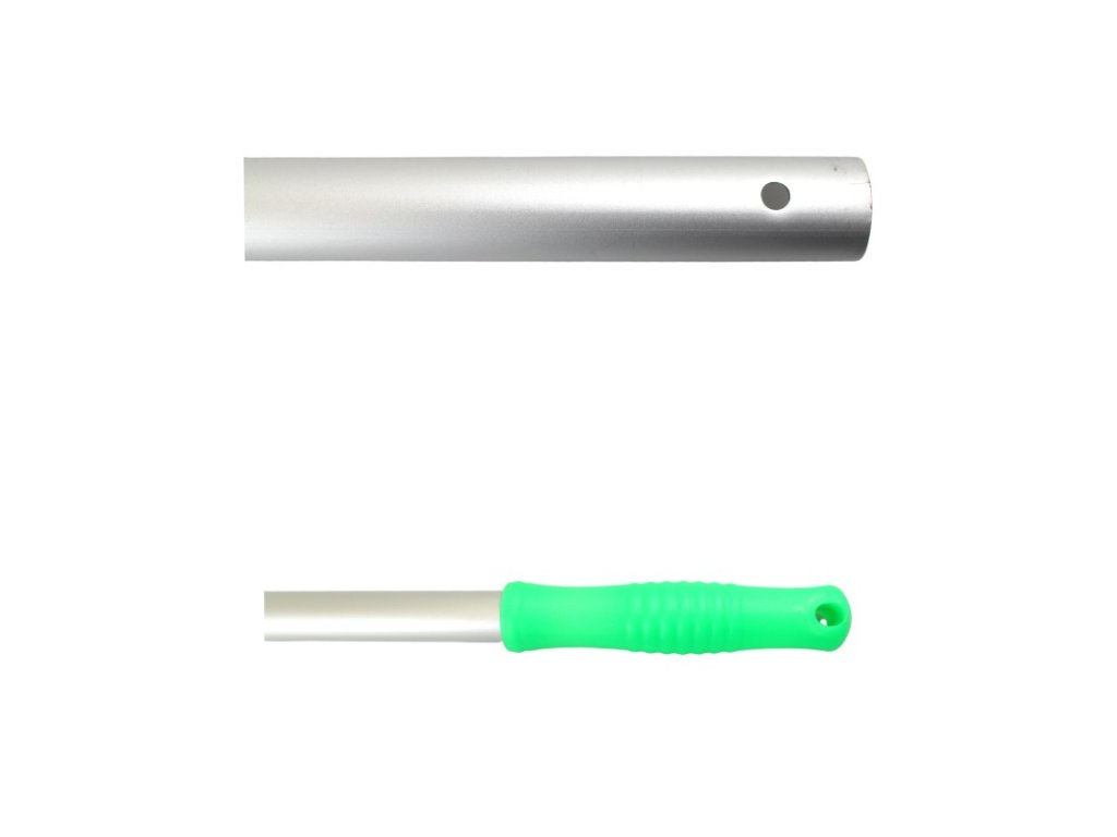 Alu násada eloxovaná bez závitu ZELENÁ, 140cm Táto eloxovaná hliniková násada je vyrobená z kvalitného prvotriedneho hliníku s vytvarovanou plastovou rúčkou a s dĺžkou 140 cm, ktorá slúži ako násada na všetky profi držiaky mopov, padov. ALU násada je veľmi pevná a odolná vďaka svojej hrúbke 23,5mm sa neláme, nekriví ani nehrdzavie. Násada sa jednoducho nasadí na držiak mopu a je bez závitu. Tým že plastová rúčka je farebne rozlíšená je možnosť ju použiť i v HACCP systéme. Hrúbka: 23,5 mm Dĺžka: 140 cm Farba: ZELENÁ Balenie obsahuje 1 ks.Dodatočné parametre