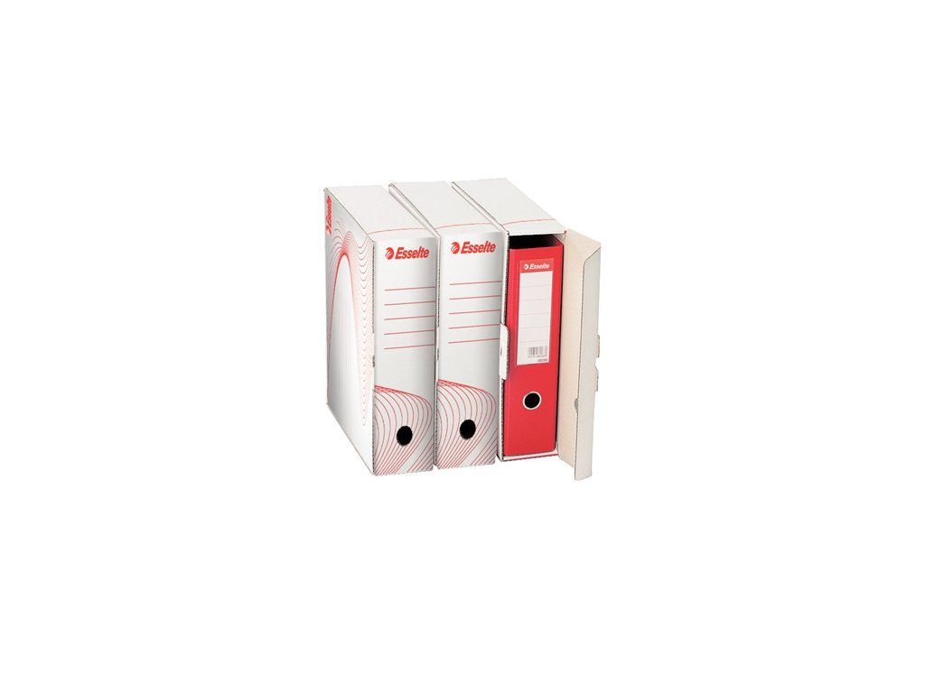Určené na archiváciu šanónov alebo zakladačov so šírkou chrbta 75 alebo 80 mm Ľahko zostaviteľné podľa návodu vytlačeného na krabici Vyrobené zo 100% recyklovanej vlnitej lepenky, 100% recyklovateľné, Certifikované FSC® Rozmer: 97 x 355 x 300 mm Značka: ESSELTE Výrobca: Esselte Kft. Adresa: 1139 Budapest, Lomb u. 37-39. A ép. II. 8., Hungary Web: https://www.accobrands.com/brands/ Email: hungarymarketing@acco.comDodatočné parametre