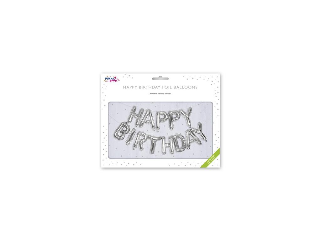 Balón, 40 cm, PUKKA PAD "Happy Birthday", strieborná