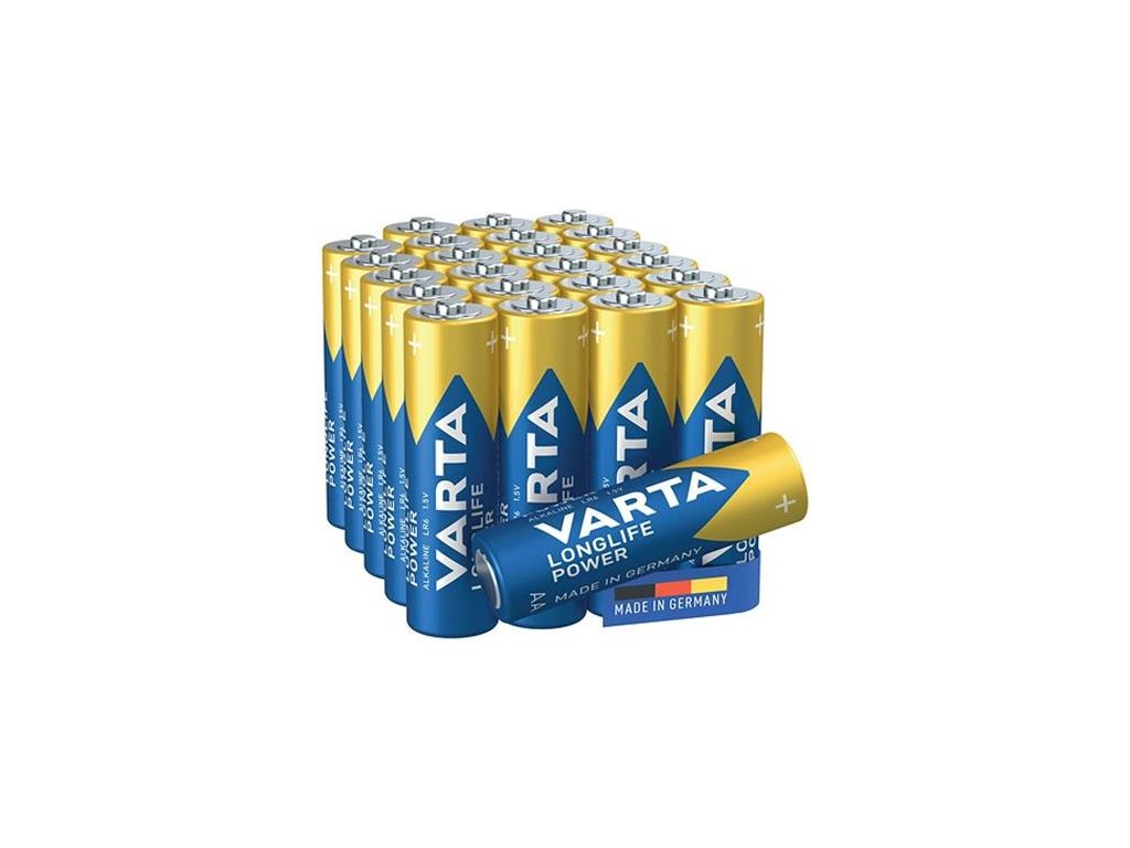 Longlife Power je najsilnejším členom ponuky batérií VARTA. Keďže je navrhnutá špeciálne na napájanie zariadení, ako sú hračky, počítačové príslušenstvo, baterky či pohybové senzory, poskytuje VARTA Longlife Power silný výkon pre zariadenia s premenlivou a vysokou spotrebou energie. Ponúka veľkú energiu pre energeticky náročné zariadenia, ako napr.: hračky, bezdrôtové myši, baterky a ďalšie. -"Made in Germany" kvalita a spoľahlivosť -10 rokov trvanlivosti -IEC: LR6 -veľkosť batérie: AA -elektrochemický systém: Primárny alkalicko-mangánový (ZN/MNO2) -napätie: 1.5 V -balenie bez obshau plastov
