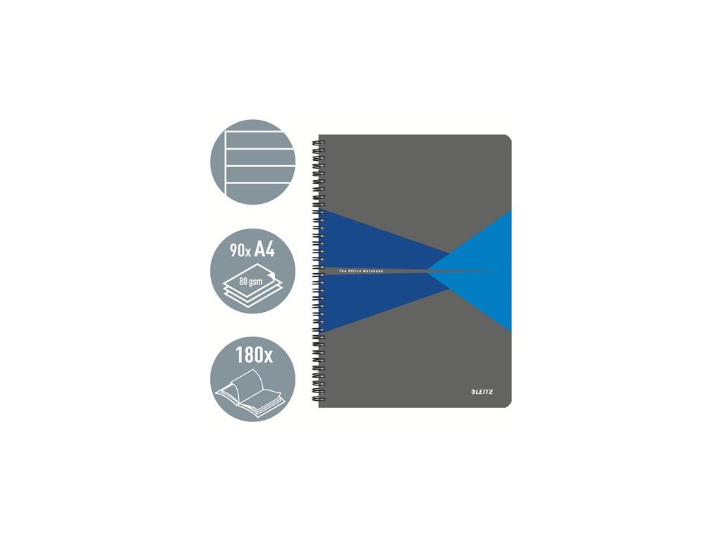 Blok, A4, linajkový, 90 listov, laminovaná kartónová obálka, LEITZ "Office", sivá-modrá