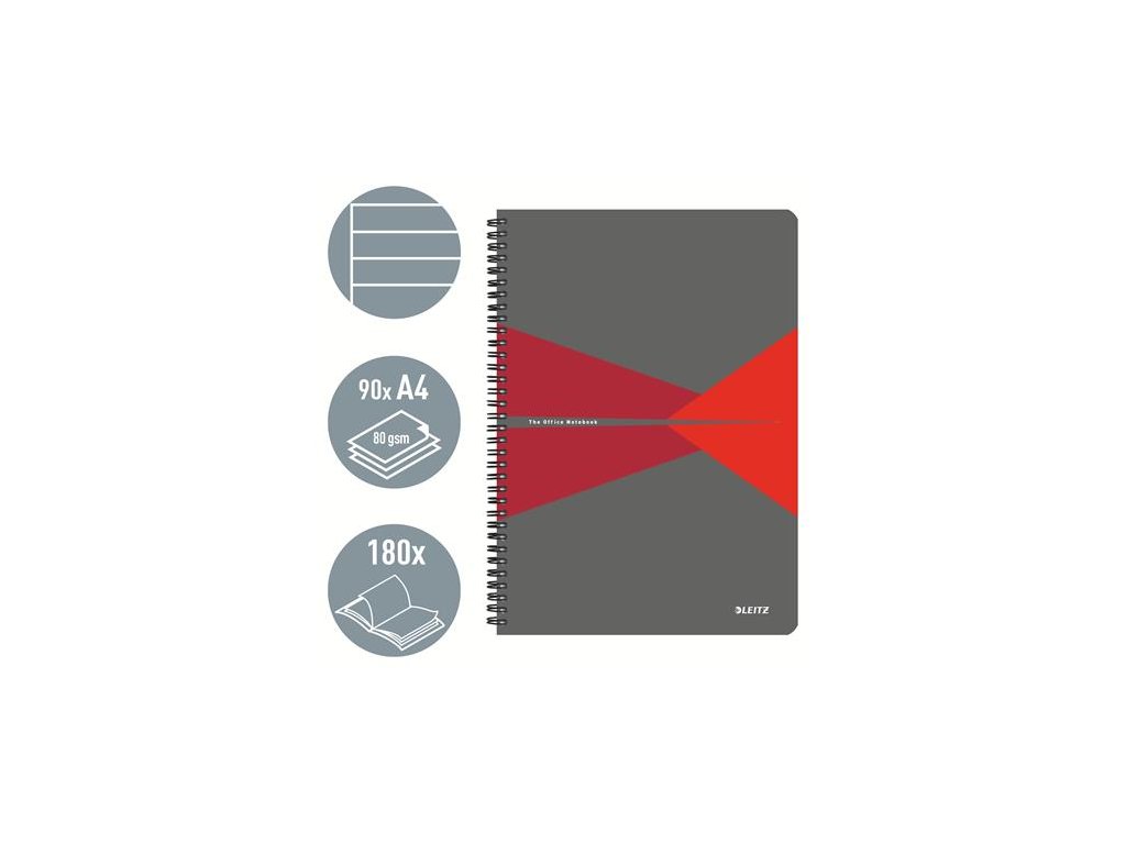 Blok, A4, linajkový, 90 listov, PP obálka, LEITZ "Office", sivá-červená