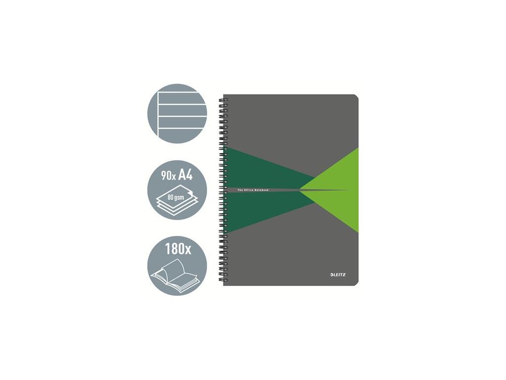 Blok, A4, linajkový, 90 listov, PP obálka, LEITZ "Office", sivá-zelená