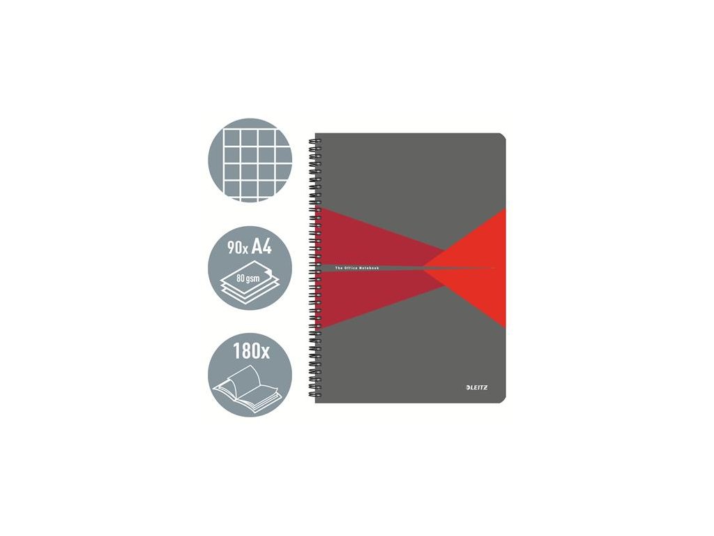 Blok, A4, štvorčekový, 90 listov, PP obálka, LEITZ "Office", sivá-červená
