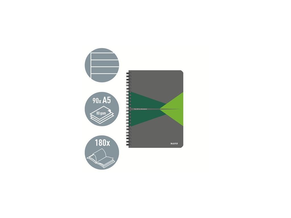 Blok, A5, linajkový, 90 listov, PP obálka, LEITZ "Office", sivá-zelená