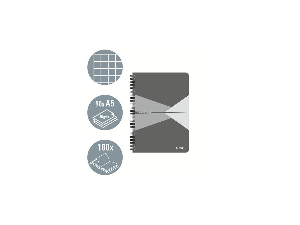 Blok, A5, štvorčekový, 90 listov, laminovaná kartónová obálka, LEITZ "Office", sivá
