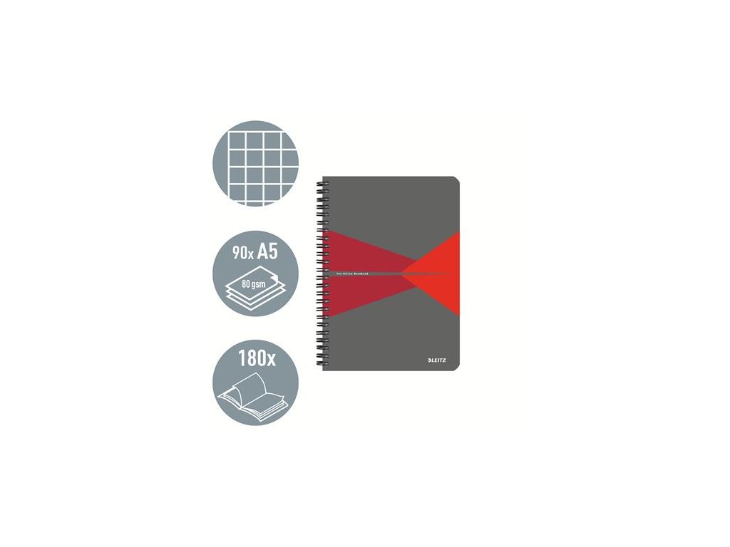 Blok, A5, štvorčekový, 90 listov, PP obálka, LEITZ "Office", sivá-červená