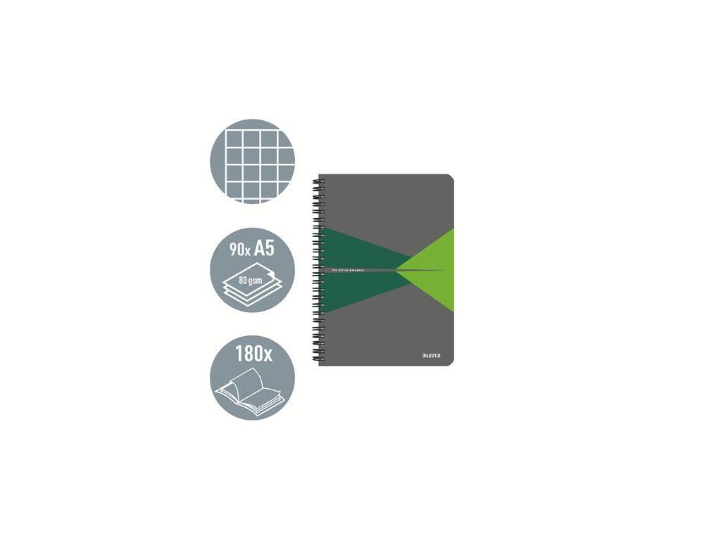 Blok, A5, štvorčekový, 90 listov, PP obálka, LEITZ "Office", sivá-zelená