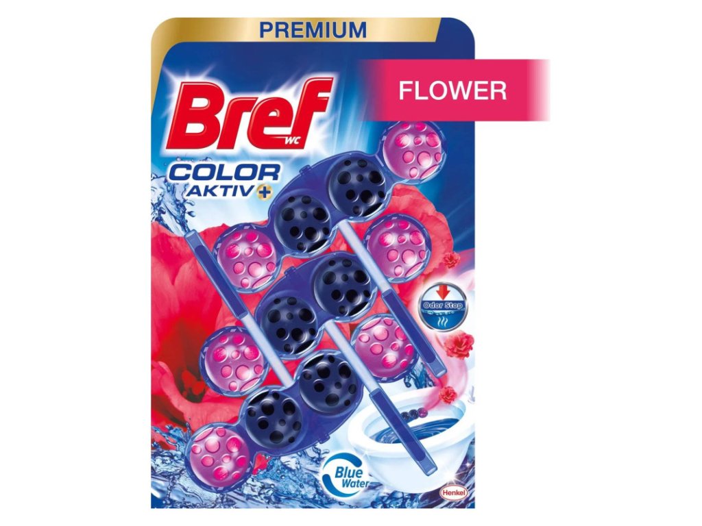 BREF WC blok Blue Aktiv Fresh Flower 3 x 50 g WC blok na hygienickú čistotu a sviežosť vašej toalety Nové zloženie kolekcie WC blokov Color Activ zaručuje o 50 % viac lesku* na povrchu toalety (*v porovnaní so suchým povrchom bez použitia WC bloku) WC blok BREF Color Aktiv chráni toaletu pred tvorbou vodného kameňa a zabraňuje zadržiavaniu nečistôt Viditeľný čistiaci zážitok s modrou vodou udržuje čistú toaletu WC blok BREF s vôňou kvetov prevonia celú miestnosť Aktívnou zložkou je čistiaca pena, ktorá čistí toaletu pri každom spláchnutí – WC blok BREF je tak najľahší spôsob ako udržať vašu toaletu čistú a so sviežou vôňou kvetov Cena je za bal./3 ksDodatočné parametre