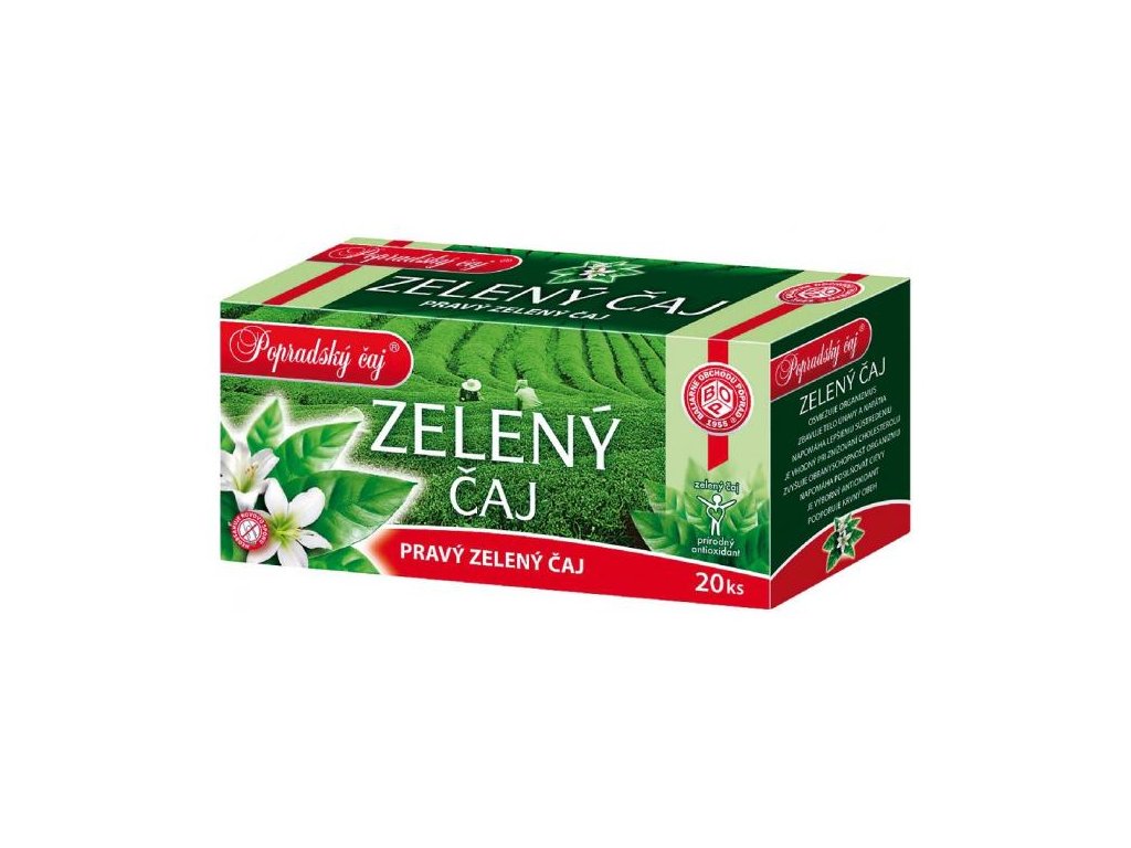 Pravý zelený čaj. Balenie 20 × 1,5 g. Vhodný doplnok pitného režimu.