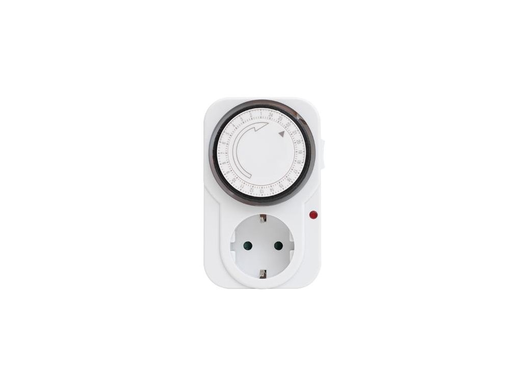 Manuálne nastaviteľný časovač, ktorý je možné nastaviť v 15-minútových intervaloch. Zariadenie je programovateľné na 24 hodín a je vhodné na denné opakujúce sa spínanie.