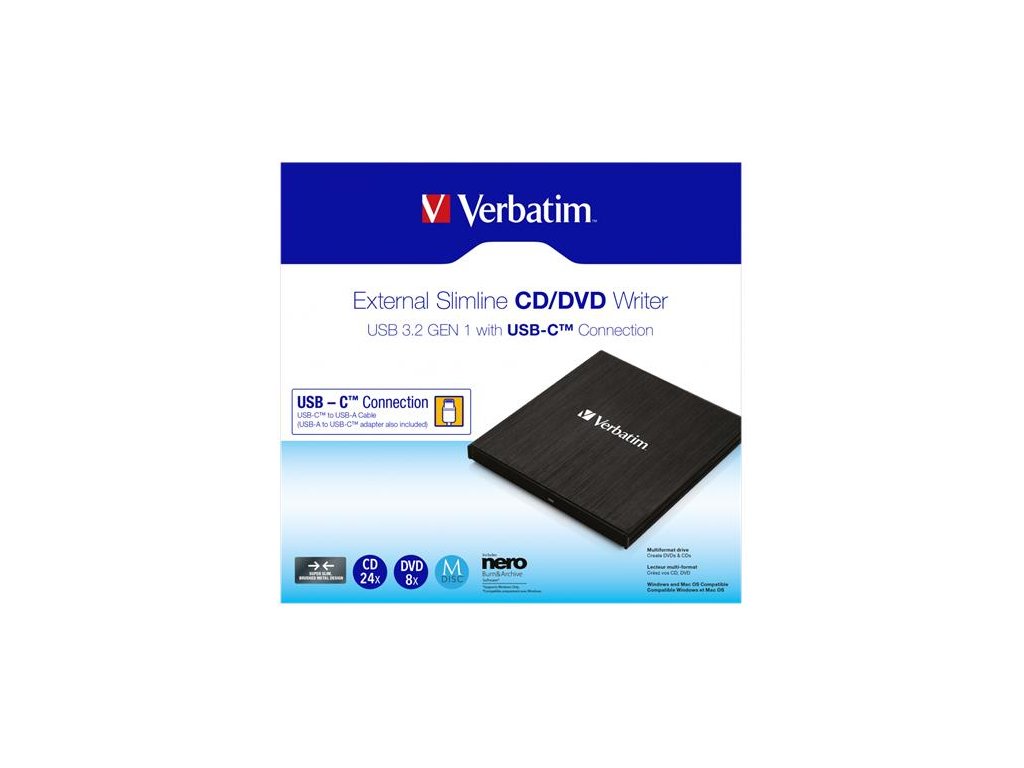 CD/DVD napaľovačka, tenká, kovové puzdro, USB 3.2 - USB-C, VERBATIM