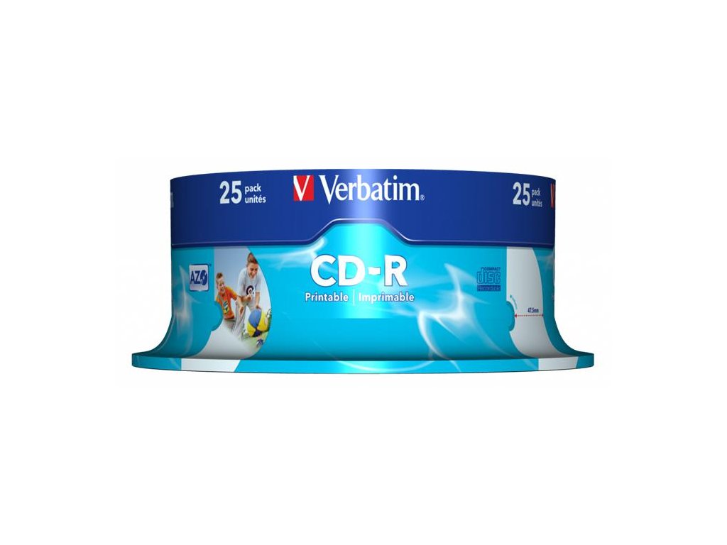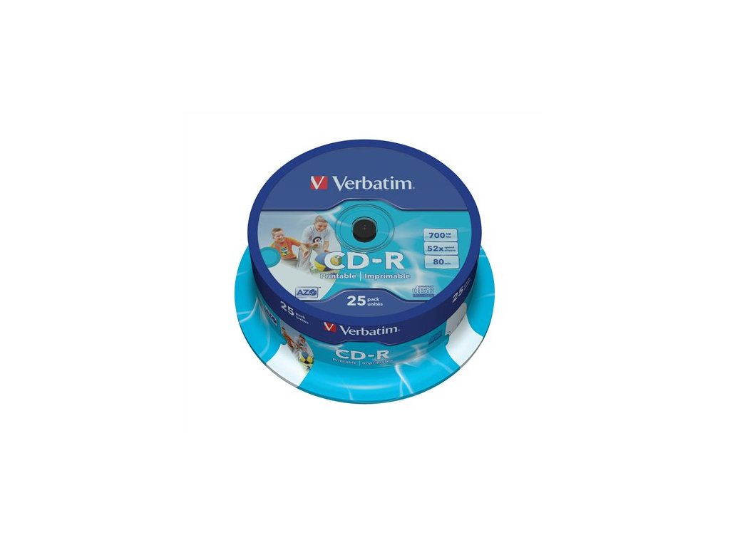 CD-R disk, potlačiteľný, matný, ID, AZO, 700MB, 52x, 25 ks, cake box, VERBATIM