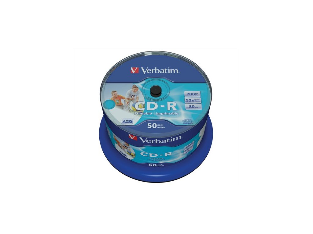 CD-R disk, potlačiteľný, matný, no-ID, AZO, 700MB, 52x, 50 ks, cake box, VERBATIM