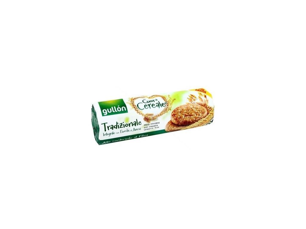 Celozrnné sušienky s vysokým obsahom vlákniny sú skvelou voľbou ku káve, čaju, alebo ako desiata do školy. Zloženie: ovsene vločky (36%), celozrnná pšeničná múka (26%), rastlinný slnečnicový olej (16%), cukor, glukózovo-fruktózový sirup, rastlinná vláknina, kypriace látky (hydrogénuhličitan sodný, hydrogénuhličitan amónny), soľ, vanilková aróma Výživová hodnota v 100 g výrobku: Energia: 1902 KJ/455 KCal Bielkoviny: 7,9 g Sacharidy: 57 g (z toho cukry: 16 g) Tuk: 19 g (z toho nasýtené mastné kyseliny: 1,7 g) Vlákniny: 12 g Soľ: 0,75 g Referenčný príjem dospelej osoby: 8400 KJ/2000KCal Alergény: lepok, pšenica. Môže obsahovať stopy sóje a mlieka. Skladovanie: Skladujte na chladnom, tmavom, suchom mieste, chráňte pred priamym slenčným žiarením! Krajina pôvodu: ŠpanielskoDodatočné parametre