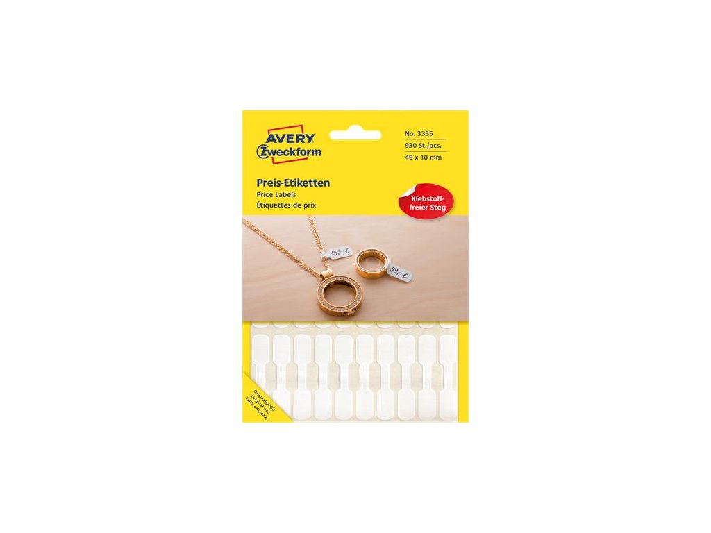 Biele cenocé etikety AVERY ZWECKFORM. ideálne na ručné popisovanie – rýchle a jednoduché použitie -vhodné na označovanie cien bez použitia tlačiarne -balenie: 930 etikiet/bal -tvar piškótyZnačka: AVERY ZWECKFORM