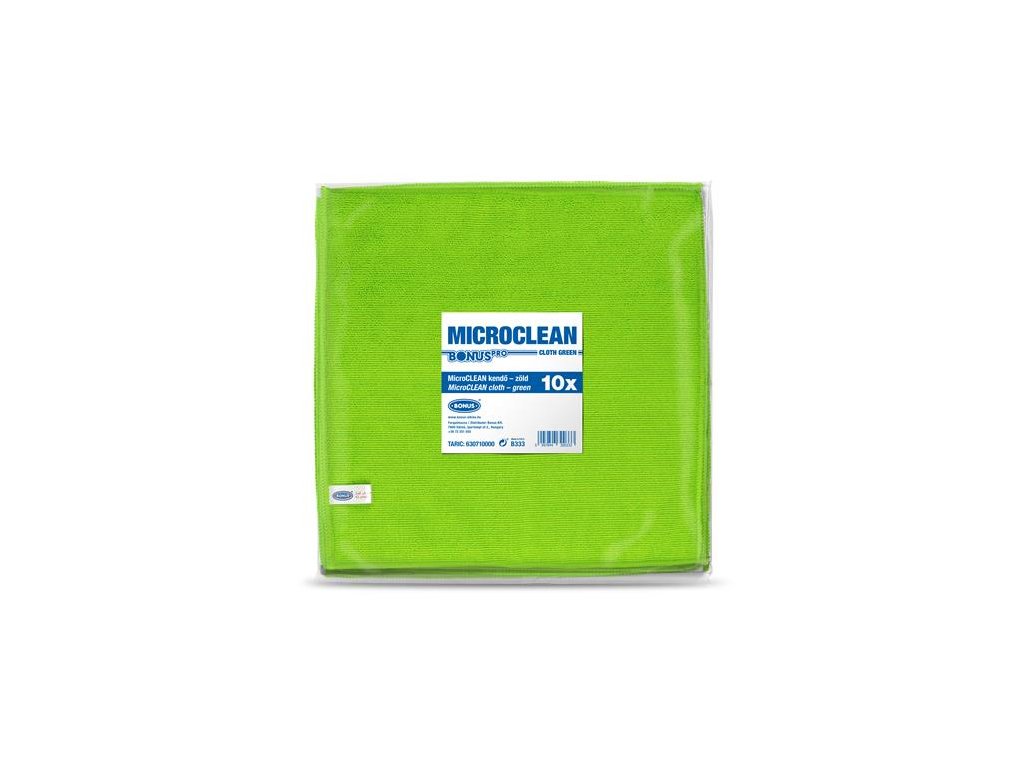 Pre profesionálnych používateľov, ako sú autoumyvárne, hotely, kuchyne a správcovia objektov. Farebne kódovaný čistiaci nástroj na profesionálne upratovanie v súlade s normami HACCP. Vďaka mikrovláknam je možné sklenené a zrkadlové povrchy vyčistiť bez šmúh a zvyškov vlákien. Má vysokú absorpčnú schopnosť – dokáže nasať až šesťnásobok svojej vlastnej hmotnosti vo vode. Možno prať pri teplote až do 60 °C. Zloženie materiálu: 80 % polyester, 20 % polyamid. Rozmery: 32 x 32 cm. Farba: zelenáZnačka: BONUS