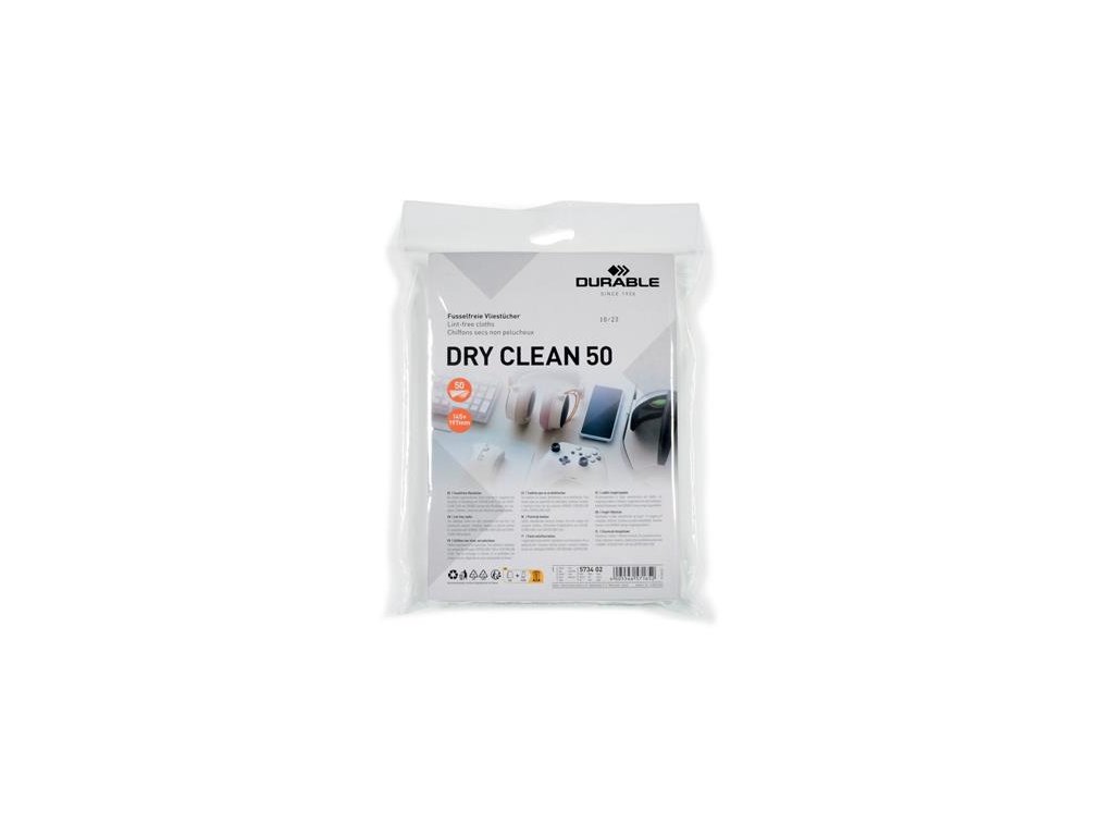 Čistiace utierky na monitory, 50 ks, DURABLE "DRY CLEAN 50", biela