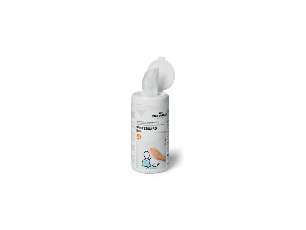Čistiace utierky na tabule, 100 ks, DURABLE "WHITEBOARD BOX 100"