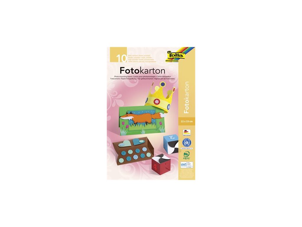 Dekoračný kartón, 2 stranný, 22x33 cm, 300 g, 10 listov, FOLIA, rôzne farby