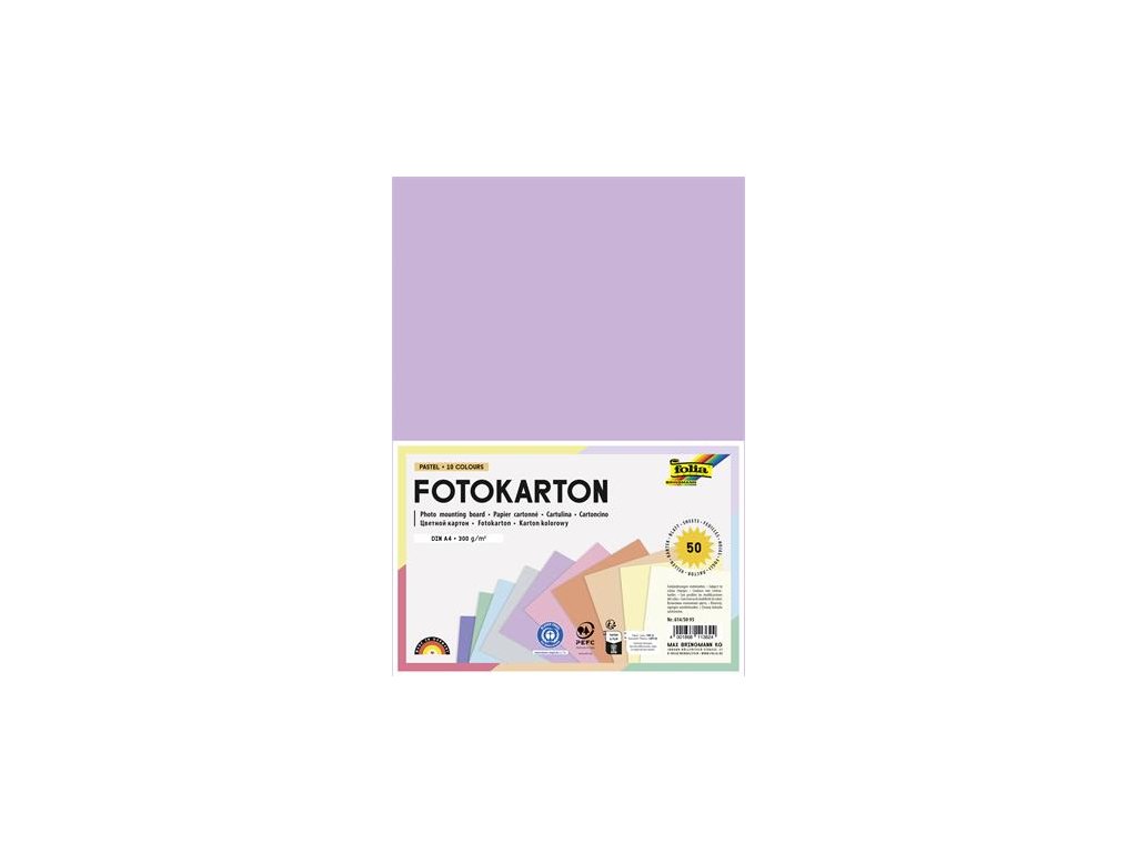 Dekoračný kartón, 2 stranný, A4, 300 g, 10x5 listov, FOLIA, „Pastel”, rôzne farby