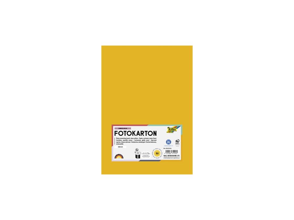 Dekoračný kartón, 2 stranný, A4, 300 g, 50 listov, FOLIA, hlboko žltý