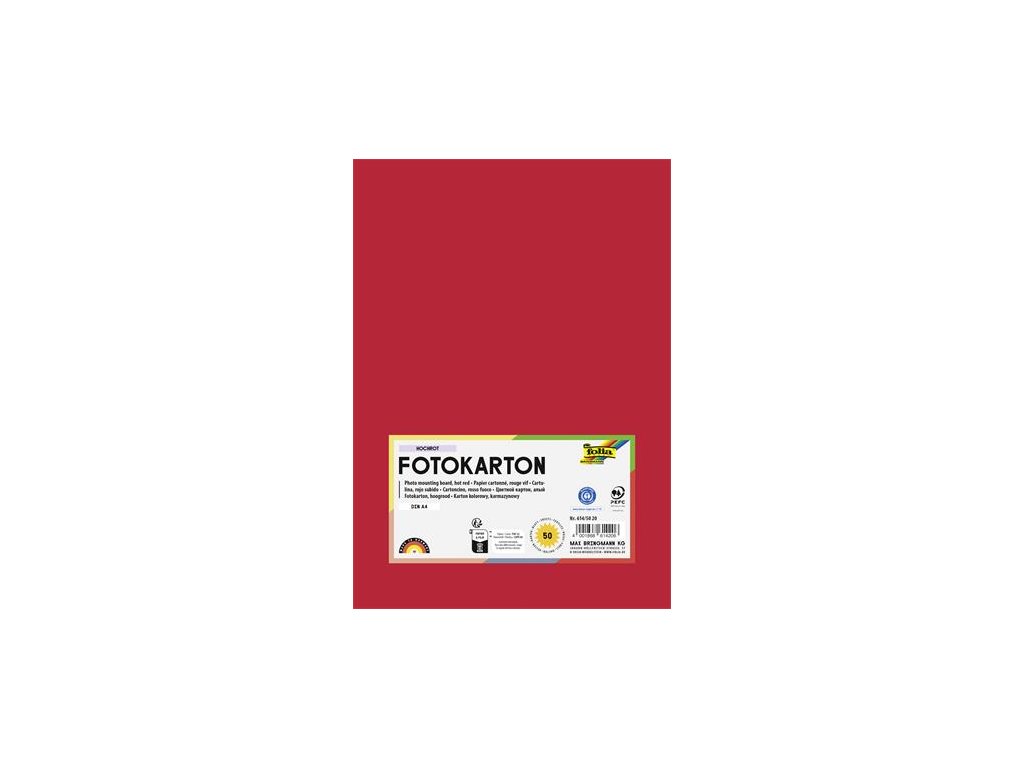Dekoračný kartón, 2 stranný, A4, 300 g, 50 listov, FOLIA, jasný červený