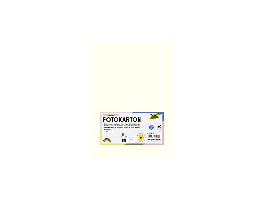 Dekoračný kartón, 2 stranný, A4, 300 g, 50 listov, FOLIA, perleťovo biely