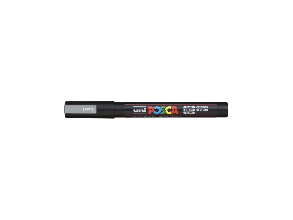 Dekoračný popisovač, 0,9-1,3 mm, UNI "Posca PC-3M", strieborný