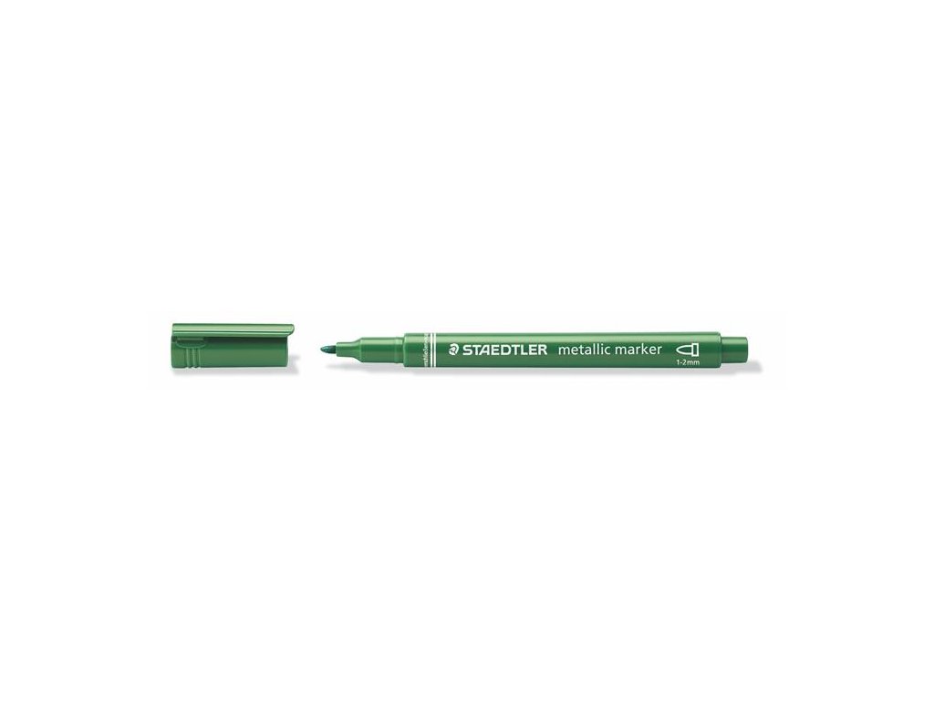 Dekoračný popisovač, 1-2 mm, kužeľový hrot, STAEDTLER "8323", kovovo zelený