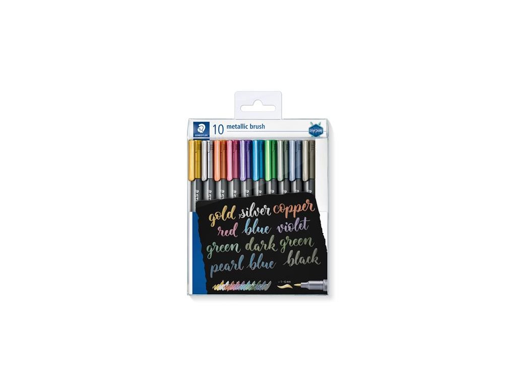 Dekoračný popisovač, 1-6 mm, kužeľový hrot, STAEDTLER "8321", 10 rôznych kovových farieb
