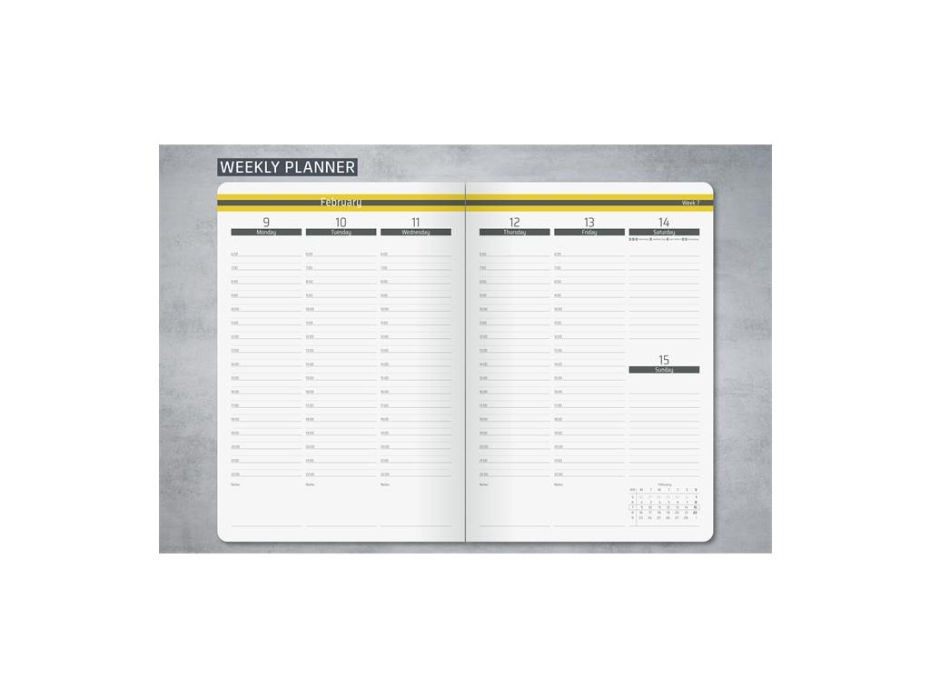 Diár, A5, týždenný, 2026, tvrdá obálka, SIGEL "Linescape", sivý-žltý