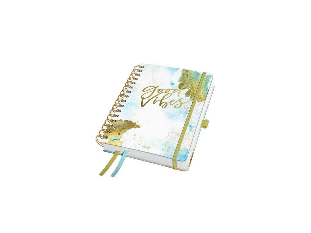 Diár, špirálový, A5, týždenný, 2026, tvrdá obálka, SIGEL "Jolie", Good Vibes