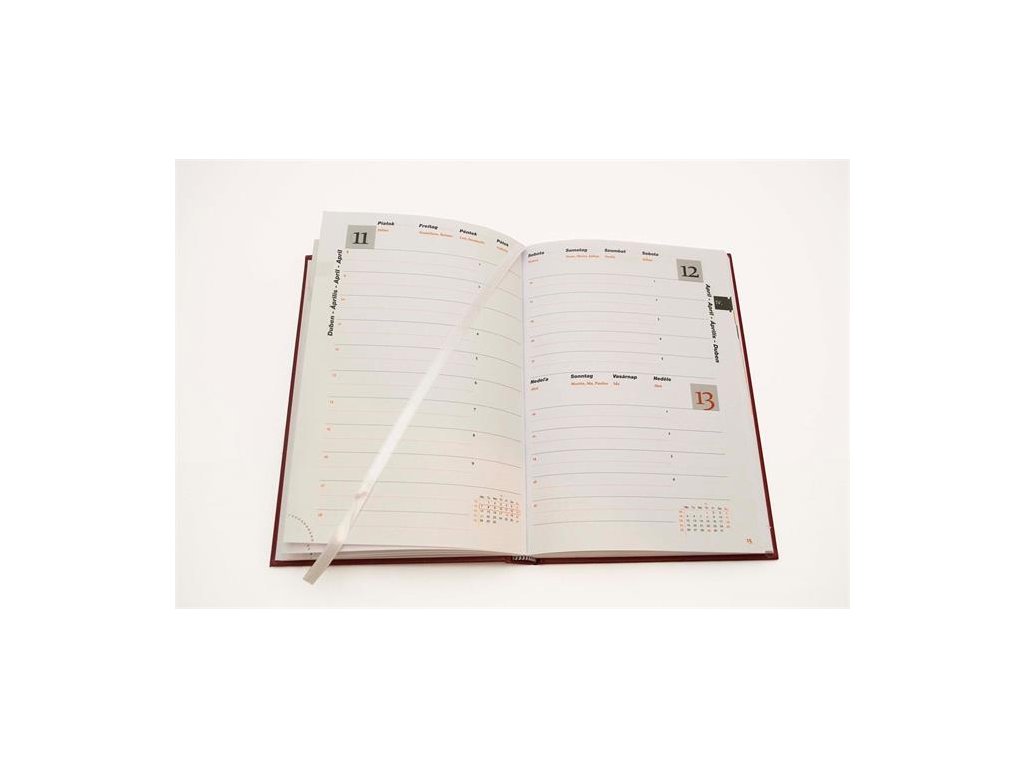 Denný diár, ročný, A5, ktorý pomáha s plánovaním denných úloh na elegantnom bielom papieri s dvojfarebnou potlačou.