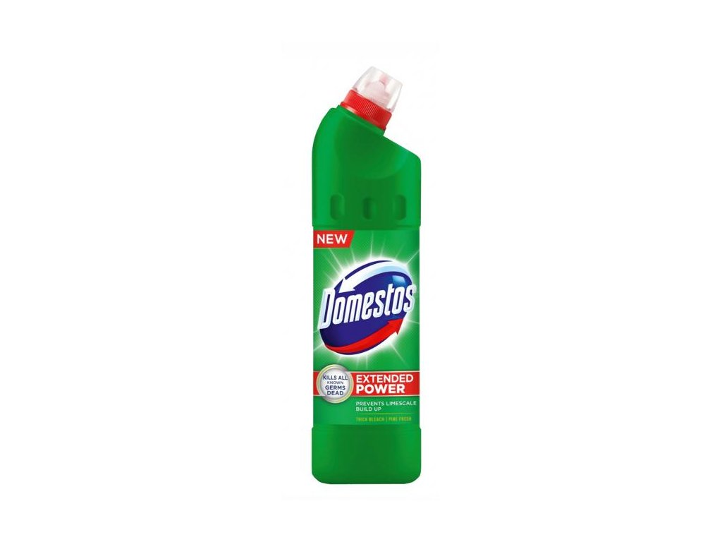 Hustý gel a úsporné dávkovanie odstraňuje mastnotu, zažranú špinu a škvrny. Ničí všetky baktérie.Domestos Extended Power je nová generácia dezinfekčného prípravku, teraz s obsahom aktívnych molekúl, ktoré chránia toaletu pred vodným kameňom. Priľne k povrchu aj pod vodnou hladinou a odstraňuje škvrny a bráni hromadeniu vodného kameňa v toalete. Objem 750 ml.Dezinfekčná látka: chlórnan sodný 4,5 g / 100 g, Menej ako 5 % bieliace činidlo na báze chlóru (chlórnan sodný), Neiónové povrchovo aktívne látky, Mydlo, Parfum.