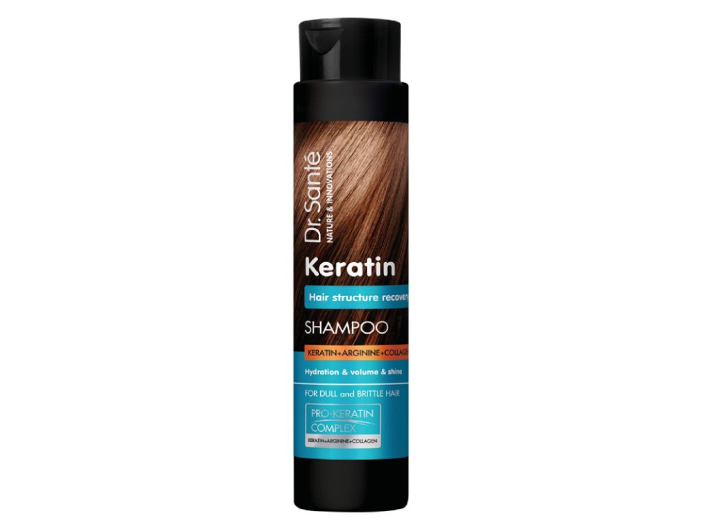 Dr. Santé šampón s keratínom pre lámavé vlasy a vlasy bez lesku Naša rada špeciálnych keratínových, arginínových a kolagénových Pro-Keratin komplexov pomáha obnoviť vlasy od korienkov ku končekom. Keratín je hlavnou štrukturálnou zložkou vlasov, ktorý preniká, vyplňuje poškodené miesta a obnovuje vlasy zvnútra. Arginín je aminokyselina, ktorá posilňuje a stimuluje rast vlasov. Kolagén dodáva vlasom neviditeľnú vrstvu, ktorá ich posilňuje a chráni. Šampón umýva, hydratuje vlasy po celej dĺžke bez zaťaženia. Prísady v šampóne vyplnia štruktúru vlasu zvnútra, po každom použití dodajú vašim vlasom hustotu, objem, pružnosť a lesk. Šampón je vhodný pre všetky typy vlasov. *Pre maximálny účinok sa odporúča používať všetky výrobky tejto rady. *Na základe výsledkov spotrebiteľských testov vykonaných v období 4 týždňov.Dodatočné parametre