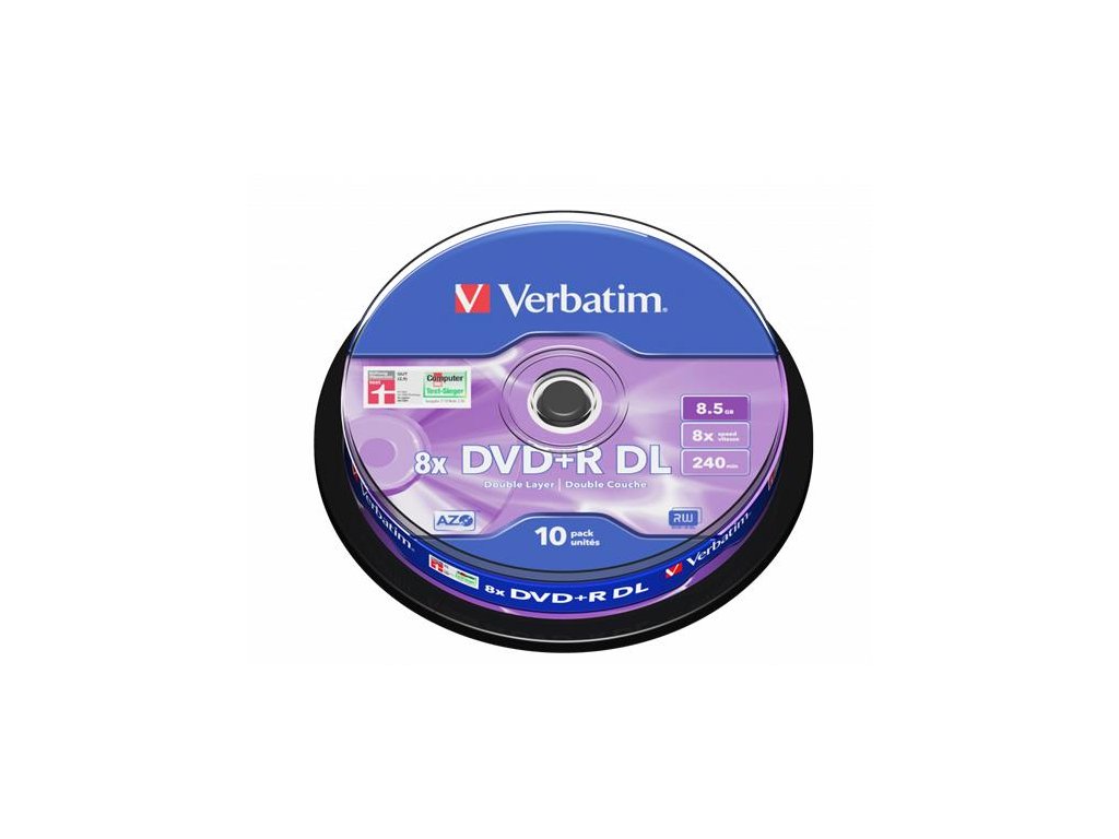 DVD+R disk, dvojvrstvový, 8,5GB, 8x, 10 ks, cake box, VERBATIM "Double Layer"