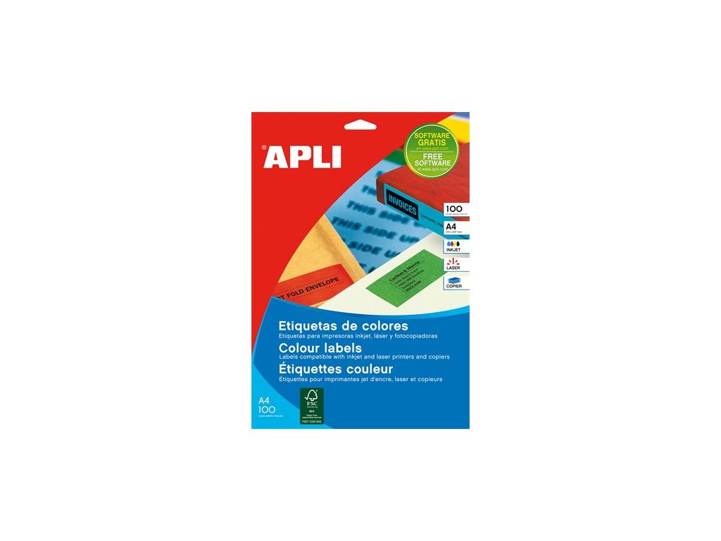 vhodné pre laserové, atramentové tlačiarne a kopírovacie stroje upútajú pozornosť a preto zabezpečujú veselý, ľahko diferencovateľný vzhľad certifikované FSC, vyhovuje požiadavkám ekologickej výroby bezplatne stiahnuteľný softver APLI Soft na tvorbu etikiet: www.apli.comDodatočné parametre