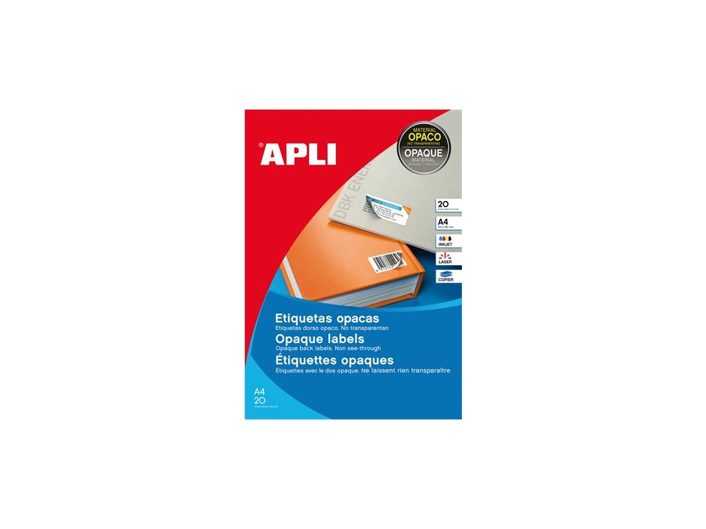 vhodné pre laserové, atramentové tlačiarne a kopírovacie stroje nepriesvitné, sú ideálne na etiketovanie a zakrytie adries, cien, čiarových kódov bezplatne stiahnuteľný softver APLI Soft na tvorbu etikiet: www.apli.comDodatočné parametre