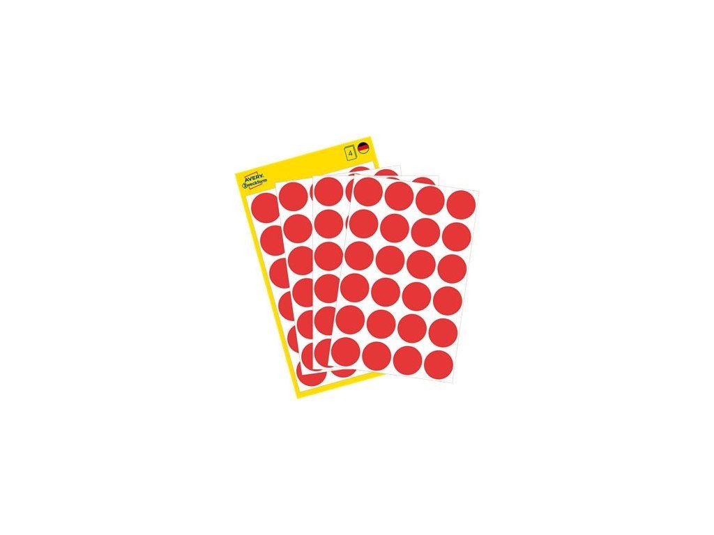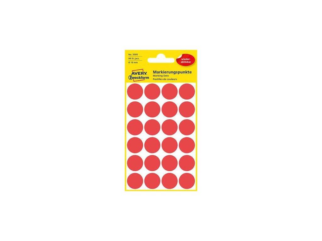 Etikety, okrúhle, priemer: 18 mm, odstrániteľné, AVERY ZWECKFORM, červené, 96 etikiet/bal