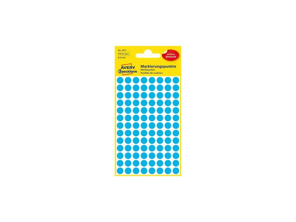 Etikety, okrúhle, priemer: 8 mm, AVERY ZWECKFORM, modré, 416 etikiet/bal