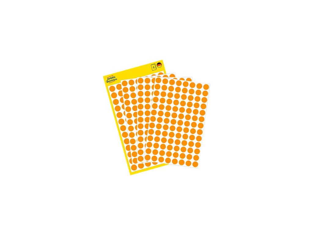 Etikety, okrúhle, priemer: 8 mm, AVERY ZWECKFORM, neónovo oranžové, 416 etikiet/bal